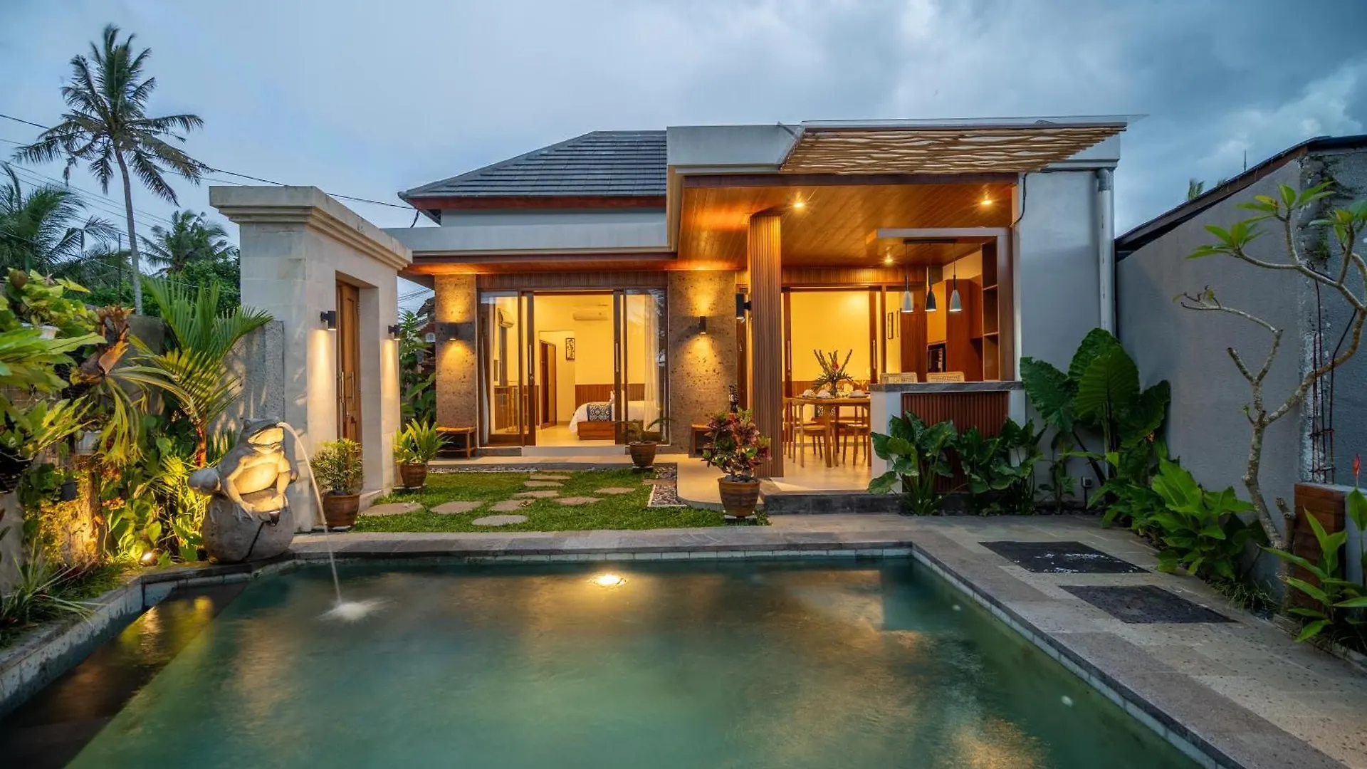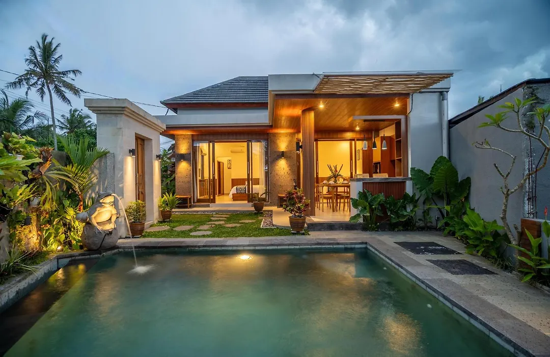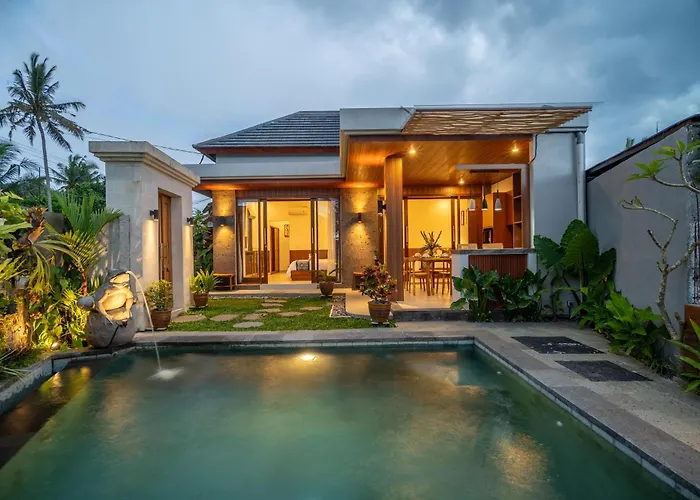 Esta villa está situada en el distrito Peliatan a una distancia de 3 km de lugares de ocio como el Bukit Campuhan. Además, esta villa está a poco más de 10 minutos en coche de la Cueva de los Elefantes y a poco más de 30 minutos a pie del Palacio de Ubud.